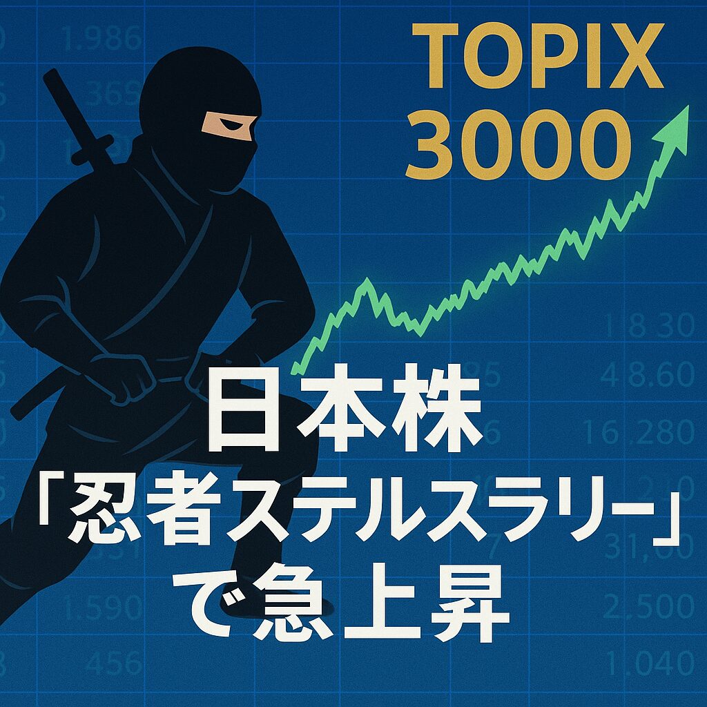 日本の株式市場が静かに、しかし力強く上昇しています。海外メディアではこの動きを「忍者ステルスラリー」と呼び、世界の投資家が注目する現象として取り上げています。東京証券取引所の代表的な株価指数であるTOPIXが3,000を突破し、過去最高水準に迫る勢いです。(2025年8月27日時点の報道)